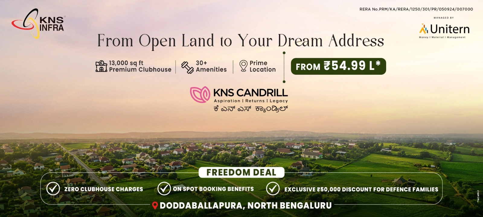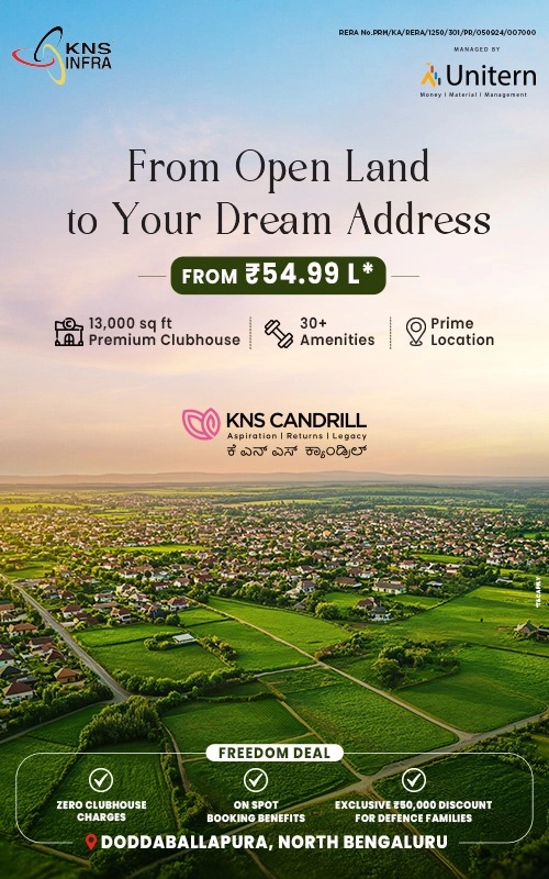 At KNS Candrill, every plot is more than land it’s a secure and promising investment in North Bengaluru’s most dynamic growth corridor. Thoughtfully designed with open skies, lush green landscapes, and tree-lined avenues, the community also features multiple parks and a modern clubhouse to elevate everyday living. Here, premium plotted development is not just about building a home—it’s about creating long-term value, stability, and a legacy for generations.